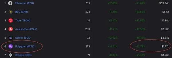 Polygon收购HermezNetwork后,形成了自己的PolygonzkEVM,它以透明的方式执行以太坊交易,包括具有零知识证明验证的智能合约,$MATIC代币为其网络提供动力。Polygon目前有275个兼容的DeFi项目,总TVL为1.77亿美元。这使得Polygon在活跃协议当中排名第三,其TVL排名第六。