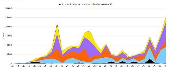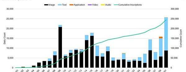 序数是单独的聪,最小的比特币货币单位。术语Ordinal来自创建者CaseyRodarmor所称的OrdinalsTheory,即单独的聪可以在比特币的供应中进行标记和跟踪。如果用户选择这种方法,就可以看到聪何时被挖掘以及它们的顺序。用户甚至可以根据各种标准为这些单独的聪应用不同的稀有特征。本文撰写时,已经将25万多个铭文与单独的聪绑定,其中大多数在2015年之前被挖掘。虽然许多人认为较早的聪很稀有,但现实是比特币的货币政策使得发行量被中本聪大量前置。