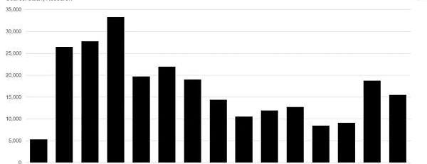 通过查看历史数据,2021年比特币区块空间中存储了182GB的数据,而2022年存储了166GB的数据。根据前20,000个铭文中平均铭刻的字节数为33,114字节,假设我们看到与2022年金融交易的年度需求水平相同的水平,那么在未充分利用的块空间中可以创建大约1,330,444个铭文。具体来说,以这种平均铭文大小,即使每年有130万个铭文,也可以填满过去两年未使用的区块空间,而不需要排挤其他交易。