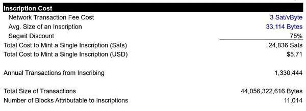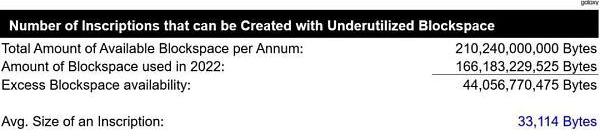 如果仅使用未充分利用的区块空间用于铭文,假设2022年制作铭文的平均费率为3聪/字节,那么它们将产生额外的330BTC交易费用,可供矿工赚取。