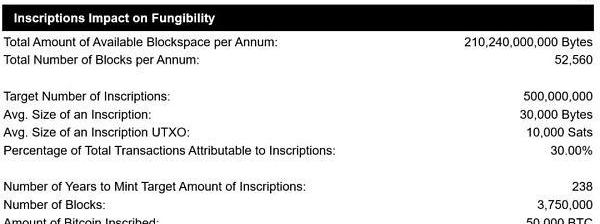 即使没有「序数理论」,铭文也可以很大。即使不依赖于个别标记BTC单位的二层方法,比特币上的显著「blobspace」数据可用性也可以找到重要的用途。对于比特币同质化可交换性的负面影响的担忧是过度的。即使与序数相关的5亿个铭文也只有0.2%的比特币最终供应变得「非同质化」。