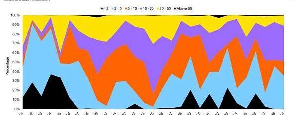牛市状况:牛市场景将通过将每个类别中的项目数量增加33%并添加如现实世界资产等新类别,来扩展基准状况。