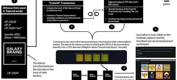 尽管在SegWit和Taproot之前使用OP_RETURN操作码将数据铭刻到比特币交易中是可能的,但OP_RETURN重量限制为80字节。因此,使用Taproot时,输入任意数据的另一种新类型的脚本变得更加实用,该脚本允许通过75%的重量单位缩减存储无限量的数据。