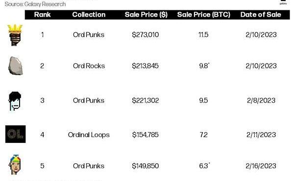 尽管中心化市场尚处于初期阶段,交易数据往往不易获取,但交易已经在诸如Discord和Telegram等在线社群中以点对点的方式进行。根据我们对这些社群和讨论的审核,以下是截至目前的销售额前五的铭文交易: