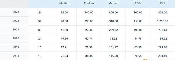 有趣的是,根据Pitchbook的数据,目前种子轮的平均估值实际上比2022年还要高,但完成的交易数量要少于2022年的平均水平约50%。根据我们自己的经验,大多数加密货币领域的无营收种子轮交易预估前置估值在1000万到2000万美元之间——因此,可能Pitchbook对于23年迄今为止的加密货币公司种子轮估值存在数据集限制。