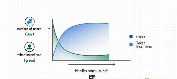 无论如何,在过去,用户放弃发行代币地项目的历史趋势是存在的,这个陷阱来自于这样一个事实,即创始人认为通过代币激励获得的用户具有粘性。在理想条件下,代币奖励与产品用户之间的图表应该如下图所示: