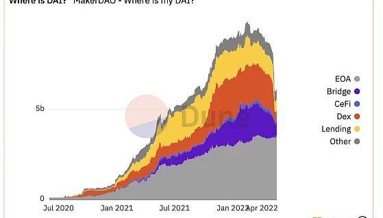 目前,DAI?的总流通约60亿,其中有约35亿在外部地址中(EOA),