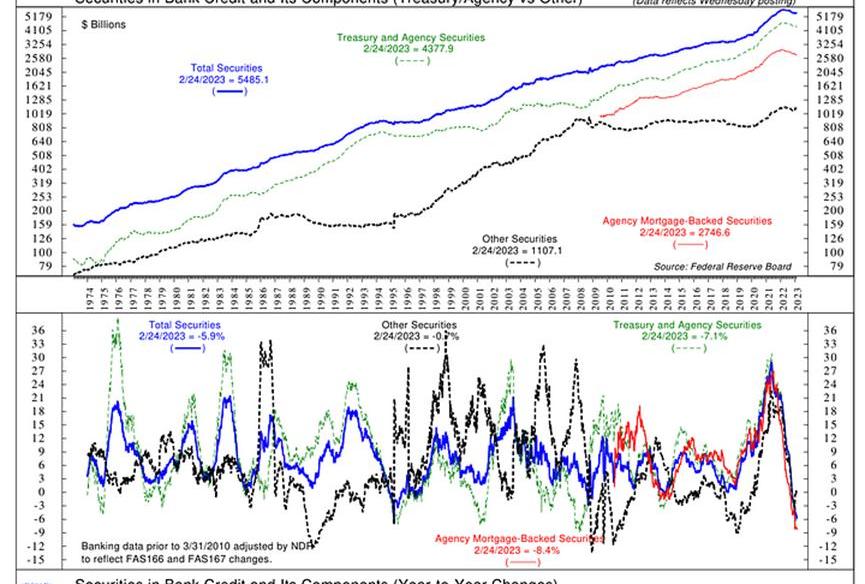 随着存款逃离小银行,他们不得不出售资产负债表上流动性最强的资产。UST和MBS债券流动性超强。然而,由于它们是在2020年和2021年购买的,在2022年底/2023年初按市值计价时,这些债券的价值大幅降低。