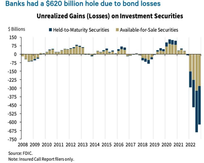 随着美联储提高政策利率而导致利率上升,这些银行的债券和贷款组合出现了巨大的未实现亏损。