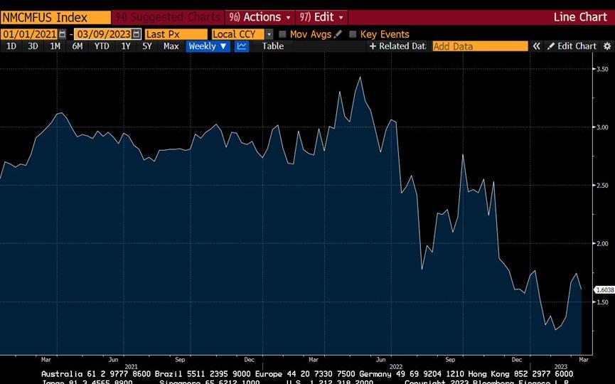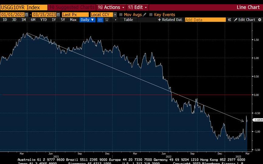 我预计,美联储要么会及早认识到这一结果,并在即将召开的3月会议上开始降息,要么一场严重的衰退将迫使他们在几个月后改变路线。自危机爆发以来,2年期国债收益率已暴跌逾100个基点。市场正在尖叫着银行系统引发的通货紧缩,美联储最终会听进去的。