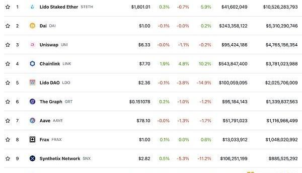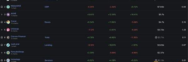 DeFi项目锁定资产前十排名及锁仓量数据来源:defillama