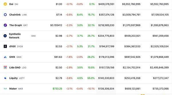 DeFi总市值及前十代币数据来源:coingecko