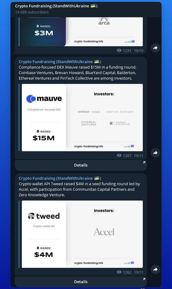 除此之外,如果你想简单一点,你可以关注Telegram上专门跟踪VC消息的BOT频道,他们会发布所有最近的VC投资,所以你不会错过任何一个。