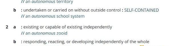 所以,那么“自治”真正意味着什么?好吧,Webster的定义非常正确: