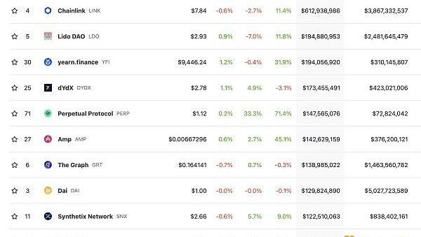 DeFi项目锁定资产前十排名及锁仓量数据来源:defillama