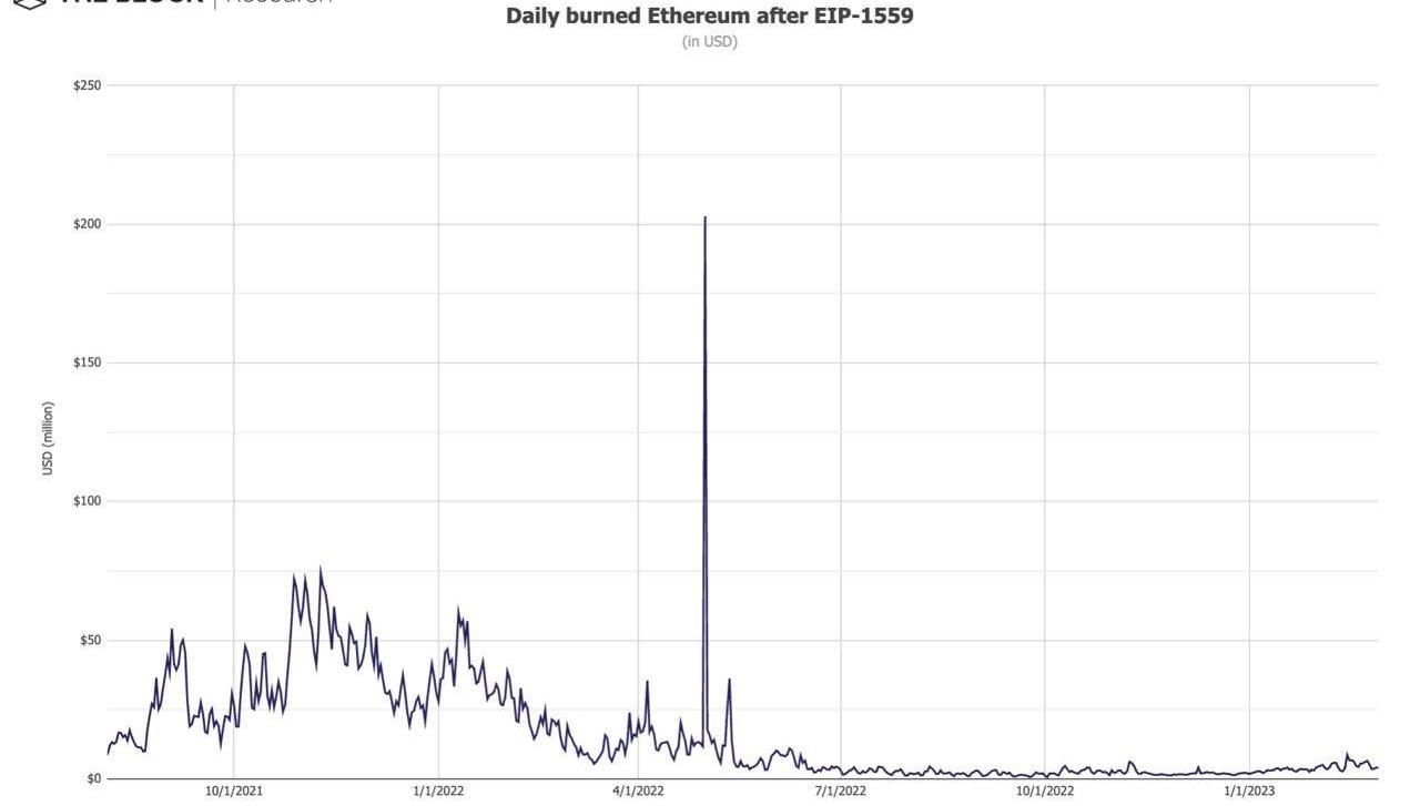 4、二月以太坊网络共销毁了84,885枚ETH,价值相当于1.381亿美元。数据显示,以太坊在整个二月期间都处于通缩状态,此外自2021年8月上旬实施EIP-1559以来,以太坊总计销毁了约295万枚ETH,约合90.2亿美元。