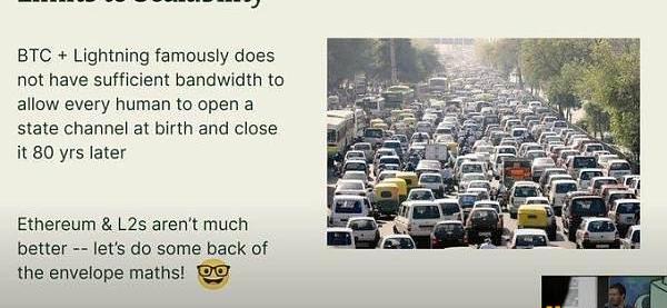 MartinK?ppelmann?认为L2只适合状态不会膨胀的应用,比如交易所,但对于状态膨胀的应用是没办法扩容的,并列举了以太坊和L2如何限制吞吐量的例子。
