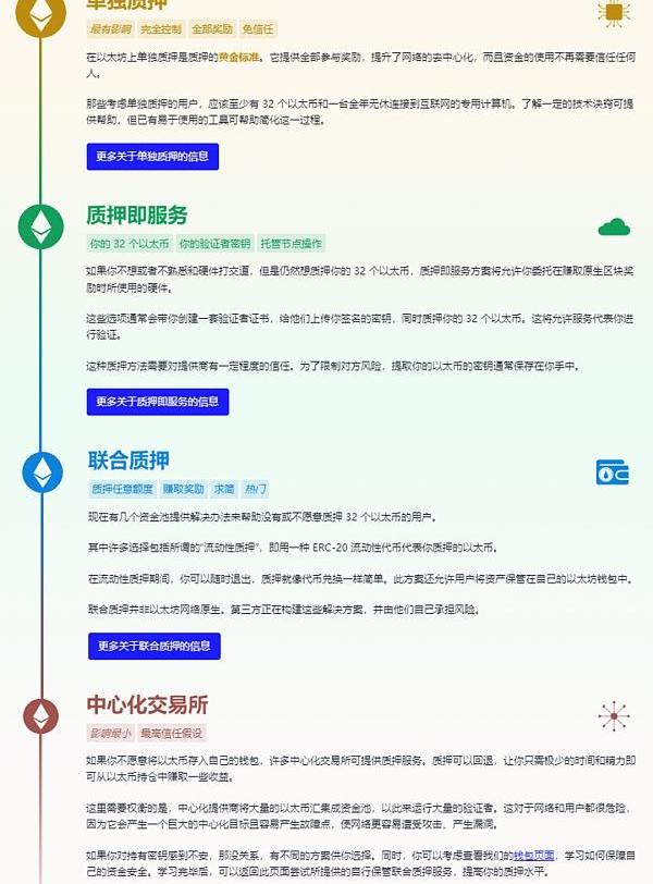 从表中可见,联合质押的特点主要是无需运行硬件,无32ETH门槛,无需管理密钥,简便易操作,且能随时退出。但同时需要托管资产,有一定的信任风险。
