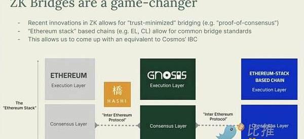 就是说:我们来做另一个链,跟以太坊运行一样的东西,然后通过无信任的ZK-bridge来连接,组成一个以太坊宇宙
