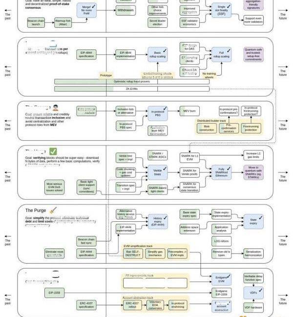 Proto-Danksharding:目的是降低以太坊主网的手续费。如果升级成功,以太坊性能将会得到数十倍的提升,并且同时将为L2的发展铺平道路。