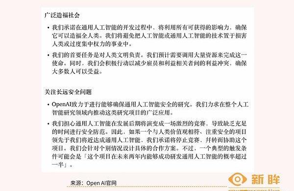 做中国的ChatGPT和做中国的OpenAl,是完全不同的两件事。前者贴近为了流量追一个风口,后者的格局大得多得多。在OpenAI官网可以看到它的纲领和章程,其中有一条反竞争条款: