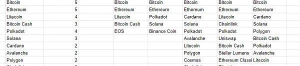 根据香港证监会的提议,他们将只允许交易“包含在两个已批准指数中大市值虚拟资产”。具体会选择哪些代币将由香港证监会决定,其中,其暗示了两种潜在的主流代币。更具一些最大的加密货币指数,@tier10k列出了相关的代币与权重。