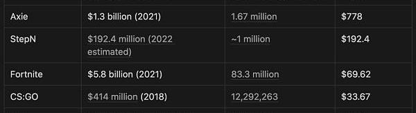 图8:典型Web3游戏与传统游戏在收入和用户上的对比。数据来源:公开资料整理