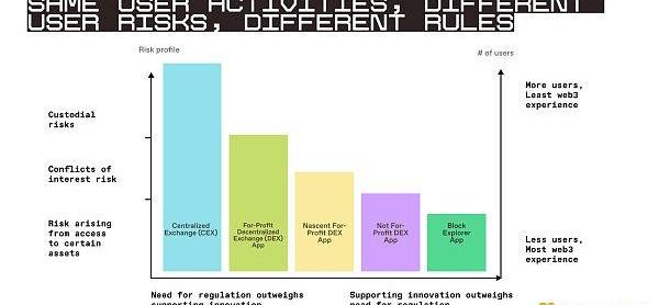 在本系列的第四部分中,我们展示了该框架如何在实践中应用于假设的市场结构监管。我们首先定义了假设监管的范围,然后解释了监管的不同规则和要求如何适用于web3领域的不同类型的参与者和应用。这一分析表明,为什么监管中最苛刻的要求应适用于对用户构成最大风险的应用程序,而那些构成最小风险的应用程序应受到较少的监管。这种风险加权的方法确保了对消费者的保护,同时也保护了创新。