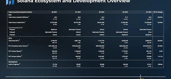 作为2022年第三季度Solana报告的后续,本报告将深入探讨本季度的数据表现以及Solana继续克服挑战并在不利的市场条件下取得进展的定性证据。