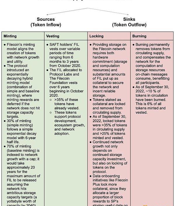 网络的增长需要使用和消耗代币,从而减少了可用的代币供应。截至?2022?年?9?月底,已铸造或授予约?5.2?亿?FIL。其中,大约?70%?处于流通中,因为大量的?FIL?由于网络交易费用被烧毁,或被锁定为质押品以确保网络安全并激励可靠的存储。随着网络的成熟,代币排放率预计会逐渐降低,因为?Filecoin?具有有限的归属时间表和一个排放与网络增长挂钩的铸造模型。