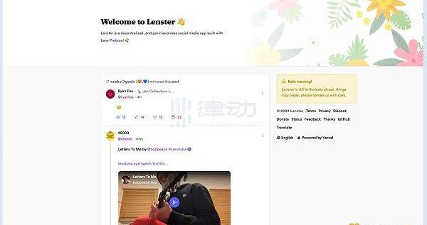 Lenster,Lenster是目前Lens生态最主要的应用,大部分用户与Lens协议的交互行为均在该应用内完成。Lenster的用户界面与Twitter相似,是一款去中心化且无许可的社交媒体应用,用户可以在Lenster上连接其他用户的图谱NFT,或者加入各类社区进行评论、共创、治理等互动。普通用户可以随意浏览Lenster上的内容动态,但想要与其进行交互则需要持有图谱NFT。