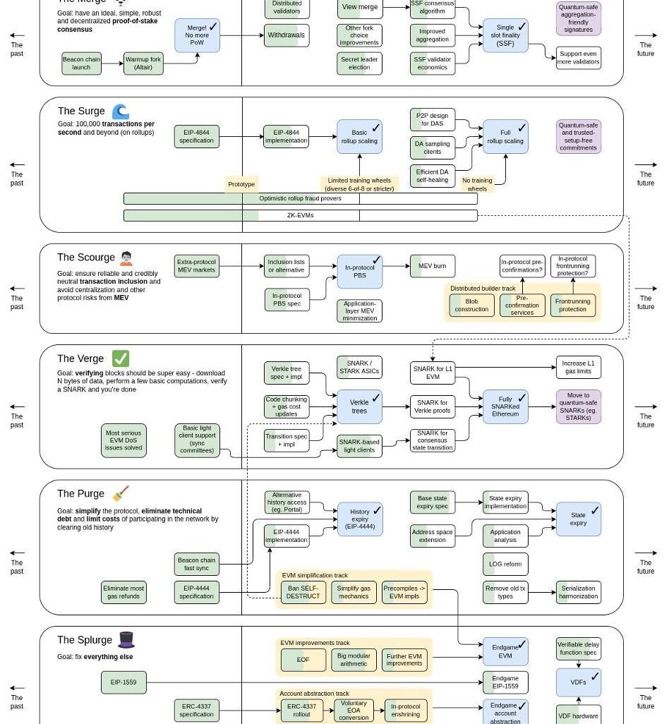 展望未来,Vitalik将以太坊的“变化最快的时期”分为6个不同的部分:TheMerge、TheSurge、TheScourge、TheVerge、ThePurge和TheSplurge。?
