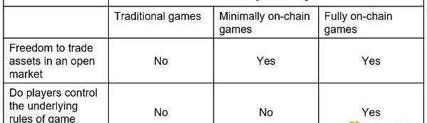 问题是,大多数区块链游戏都没有达到这个标准。像AxieInfinity或CryptoKitties这样的游戏都是最低限度的链上游戏。他们的资产作为链上数据存在,但游戏的基本逻辑和状态存在于链下的中心化游戏服务器。