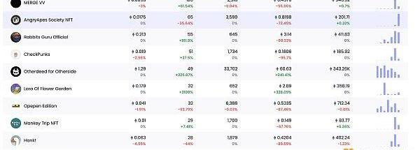 24小时NFT交易量、交易量前十项目数据来源:Coinmarketcap