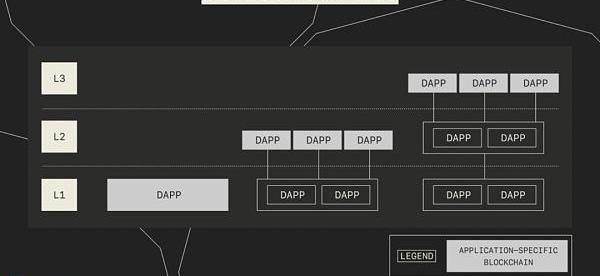 Layer2(L2)通过降低Gas费用和增加吞吐量来提高以太坊的可扩展性。由于这些可扩展性因素,以及存在的权衡,L2必须选择针对特定项目进行优化。Layer3是基于L2构建的特定于应用的区块链,旨在减轻这些权衡并进行更多改进。它们类似于Cosmos、Avalanche和Polkadot等应用链环境,但受益于构建在模块化区块链协议栈而不是单体链协议栈上。因此,部署一个完全模块化的区块链基础设施堆栈,包括一个通用的L2以及可定制的L3,将标志着单体应用链生态系统时代的结束,以及去中心化应用开发新时代的开始。