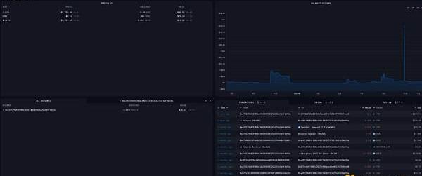 一连接上钱包就可以看到自己的资产信息,这实际上就是Arkham的dashboard的最简实例化,包括:资产表、历史资产水平、资产组合以及交易记录,持有资产也会显示实时的24小时变动情况。