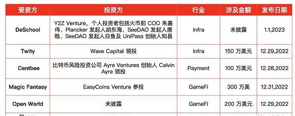 由SeeDAO战略孵化的Web3在线教育基础设施DeSchool已于2022年12月底以1500万美元估值完成了种子轮融资,参投方包括Y2ZVenture,个人投资者包括火币前COO朱嘉伟、Plancker发起人胡东海、SeeDAO发起人唐晗、SeeDAO发起人白鱼及UniPass创始人知县。DeSchoolPro版本已于2022年11月上线,讲师可利用该工具给完成课程的学员发放SBT教育凭证,Web3组织也可以使用该工具简化社区教育流程。
