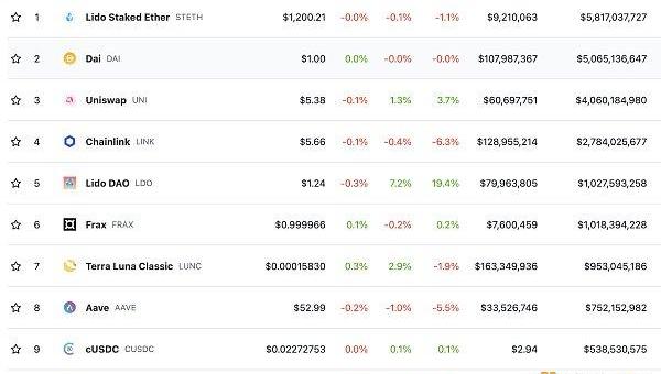 DeFi项目锁定资产前十排名及锁仓量数据来源:defillama