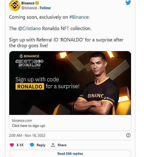 此外,克里斯蒂亚诺·罗纳尔多(CristianoRonaldo)于2022年与币安合作。这位葡萄牙球星将在交易所的NFT市场上推出自己的NFT系列。该藏品将C罗的遗产保存在区块链上,不排除未来会推出更多藏品。