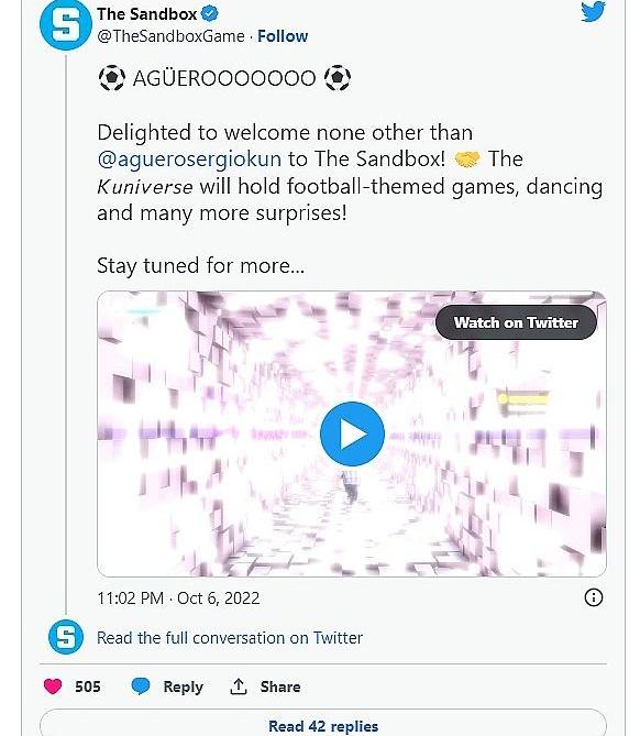另一位著名足球运动员塞尔吉奥·库恩·阿奎罗在2022年进入元宇宙。这位前曼城、马德里竞技和阿根廷国家队的足球运动员推出了自己的元宇宙体验。这是与TheSandbox合作完成的阿圭罗的元宇宙,称为Kuniverse,是粉丝与偶像见面的绝佳机会。您还可以在这个元宇宙中使用特殊的NFT,收藏共计9,320个KunNFT。