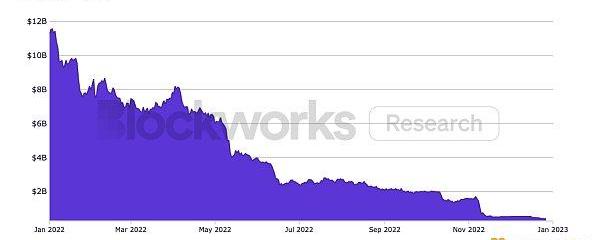 2022年下半年,Avalanche生态系统经历了一段相对停滞的时期。6月3AC的倒闭导致对Avalanche生态系统的投资减少,3AC是在Avalanche网络上项目的主要支持者。TVL从120亿美元下降到10亿美元。Avalanche的TVL下跌92%,同期AVAX价格下跌89%。