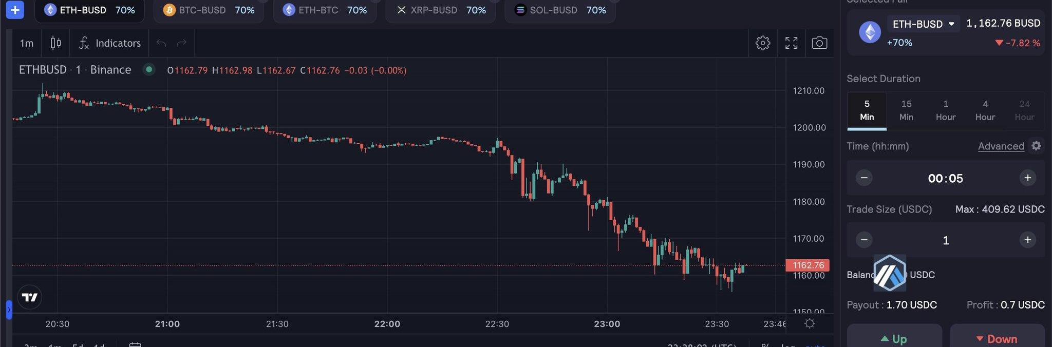 Buffer建立在Arbitrum上,是对GMX的分叉,提供二元期权交易。它的操作非常简单和直观,只需要选择执行价格、到期时间和“上涨”或“下跌”,就可以开始下注。