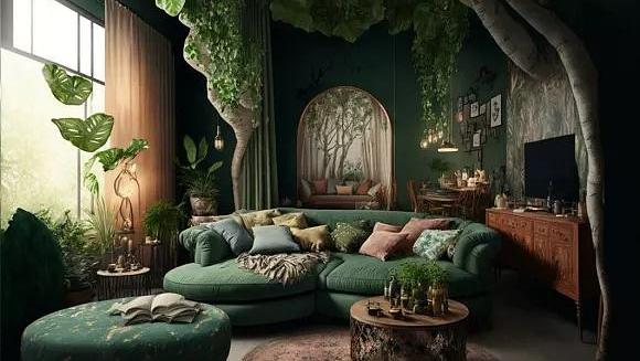 在解决来自伦敦的网友关于客厅设计的请求时,ChatGPT用一个“设计师”的口吻,描述了三种装饰,细节包括灯具形状和颜色,例如“一盏由树枝和闪烁的灯光组成的吊灯”和“天花板上悬挂透明的绿色织物”,还贴心地为网友“画”了三幅设计图。