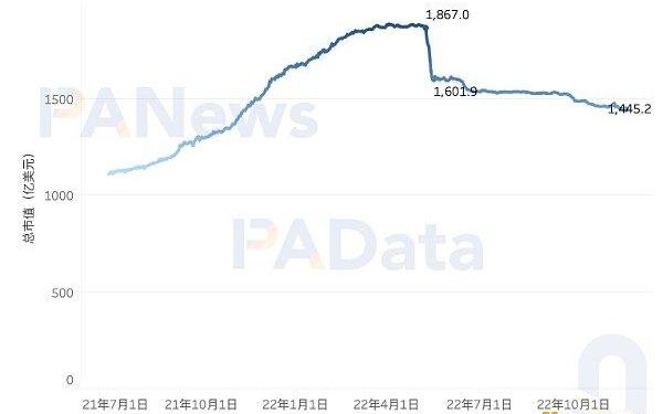 ?4?)?11?月?20?日,市场中的稳定币总市值约为?1445.2?亿美元,较?11?月?7?日减少了?19.7?亿美元。?11?月?19?日,交易所稳定币存量约为?303.5?亿美元,较?11?月?4?日减少了?55?亿美元。