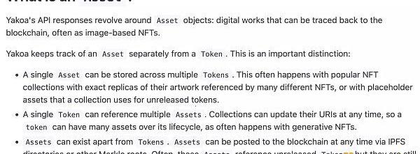 虽然是一个成熟web2技术,但是我们从它的开发文档中也可以看到web3原生的一些创新,如下图其首先对于资产进行了定义,在他的眼里资产和token是解耦的,我们平时说的NFT实际上是将资产和token一体化,即如我持有Azuki#9527,它本质的含义是一个id为9527的token,但是我们会默认带上附加在上面的那张图片。