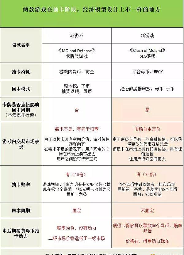 在来看《ClashofMOland》SLG游戏中,用户直接花费母币抽卡,卡的好坏直接影响回本周期,这是不一样的地方。也就是如果消费100抽到好几张顶级卡,卡牌绑定后释放的母币和子币会更多更快,消费低,收益多,比那些消费1000才抽到同样多顶级卡的用户来说回本周期自然就更快。总结就是:在不考虑排行榜奖励的情况下,回本周期是不固定的。回本模式:纪念碑挖母币+子币。