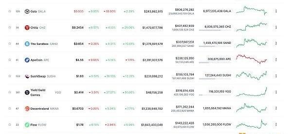 24小时NFT交易量、交易量前十项目数据来源:Coinmarketcap