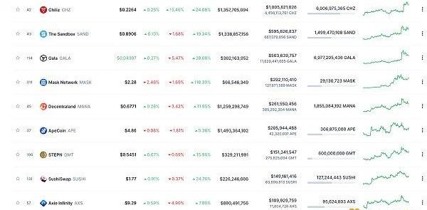 24小时NFT交易量、交易量前十项目数据来源:Coinmarketcap