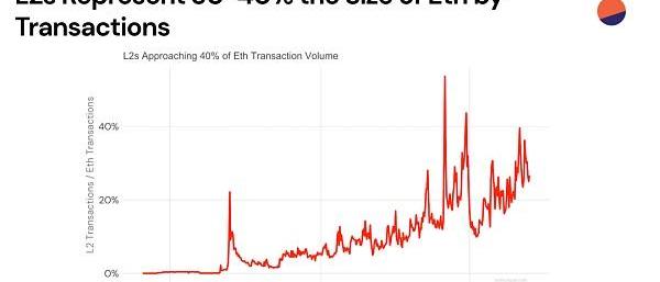 以太二层链L2在崛起,占到了以太坊生态交易量的30-40%。