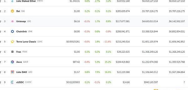 DeFi项目锁定资产前十排名及锁仓量数据来源:defillama